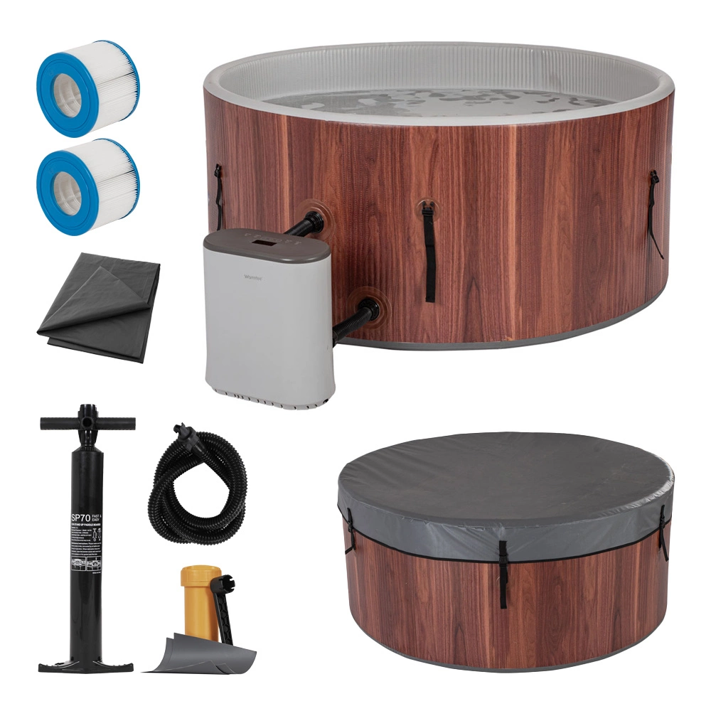 - dmuchane spa jacuzzi w dekorze drewna z pompą o mocy 2040 W, o średnicy 152 cm, dla 4 osób.