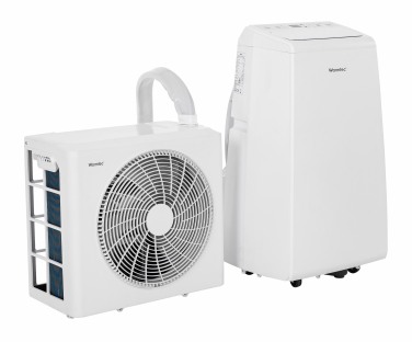 To rozwiązanie pośrednie między klasyczną klimatyzacją typu split a typowym klimatyzatorem przenośnym, który zawiera wszystko w jednej obudowie i odprowadza gorące powietrze rurą przez okno.