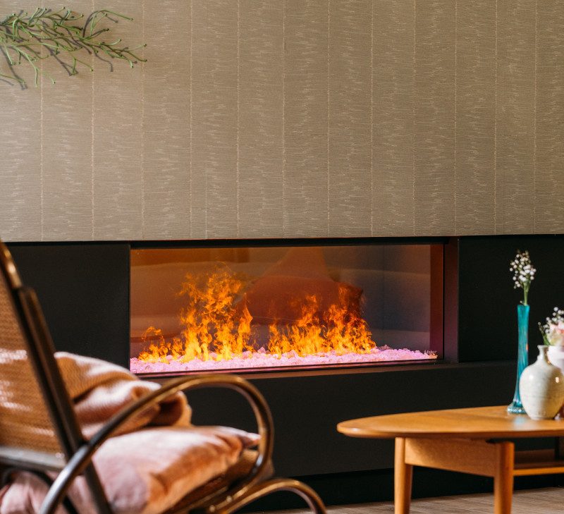 sterowanie pilotem lub aplikacją - w prosty sposób możemy dostosować intensywność efektu płomienia, dobrać kolor podświetlenia paleniska, nastawić timer czy ustawić pożądaną temperaturę ogrzewania .