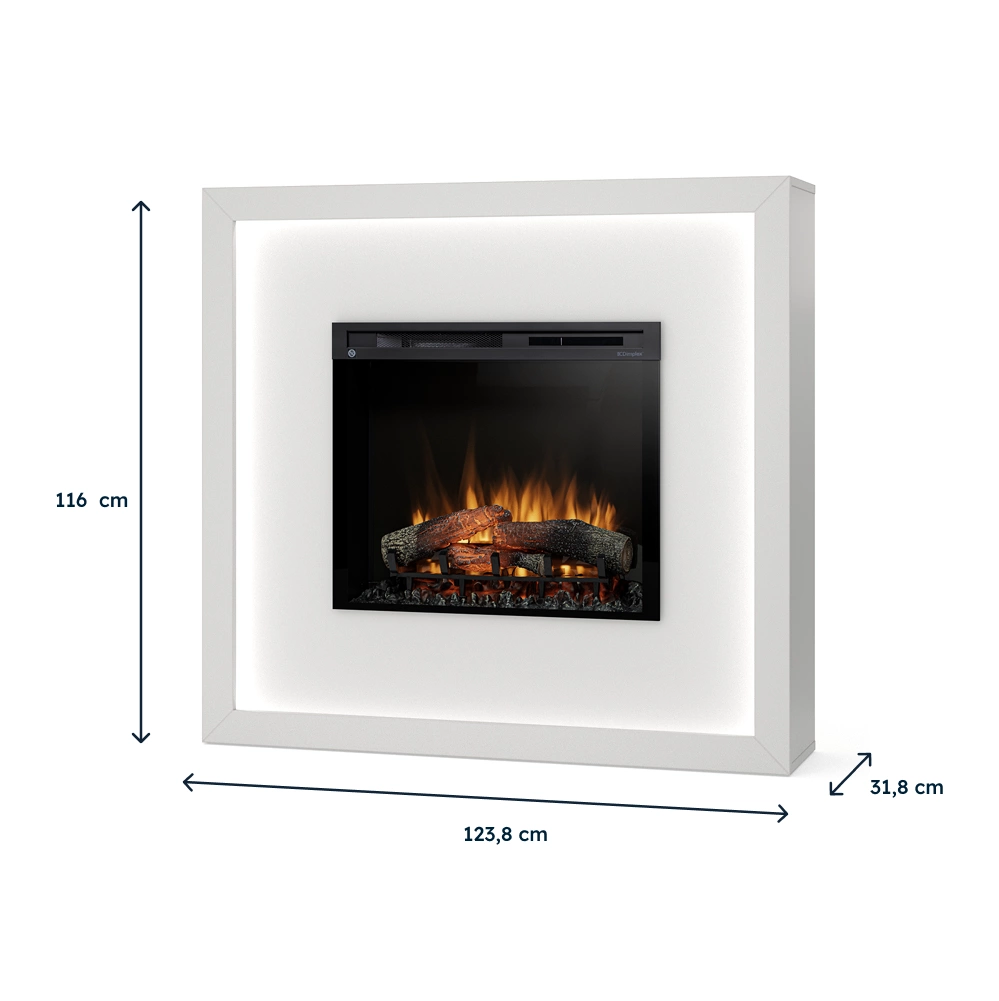 Sercem kominka Warmtec Litos jest wkład elektryczny Dimplex XHD, zapewniający realistyczny efekt płomienia oraz funkcję dogrzewania. Płomienie są jasne, dynamiczne i wiernie odwzorowują naturalne palenisko z żarzącymi się polanami.