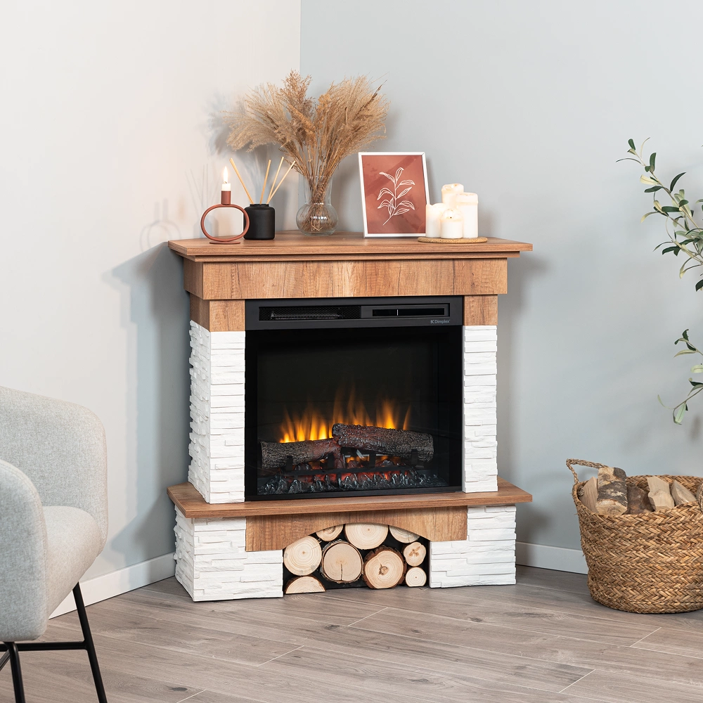Kominek elektryczny Porto narożny dąb we wnętrzu