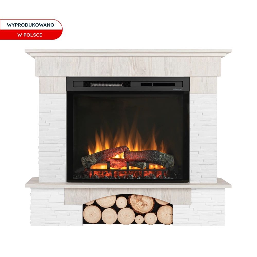 Kominek elektryczny Porto biała sosna we wnętrzu