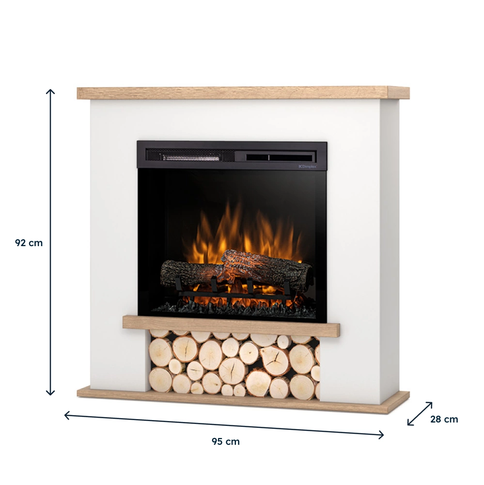 Za efekt ognia odpowiada energooszczędny wkład Dimplex XHD, który wiernie odwzorowuje wygląd płomieni. Subtelnie rozświetlone polana pozwalają cieszyć się pełnią nastroju bez obowiązku uzupełniania opału czy sprzątania popiołu.