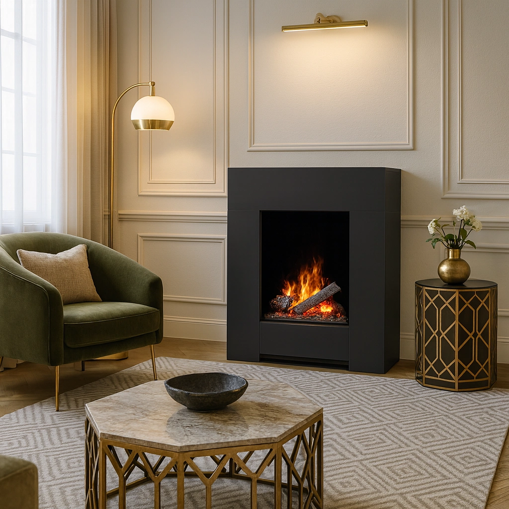 - Elektroniczny termostat Ustaw idealną temperaturę i pozwól, aby kominek sam ją utrzymywał.