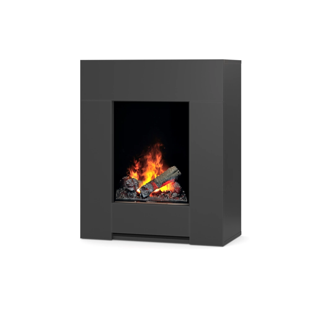 - kominek elektryczny, wolnostojący, obudowa kominka, nowoczesny kominek ledowy z funkcją grzania, kominek z efektem płomienia 3D, na prąd, czarny