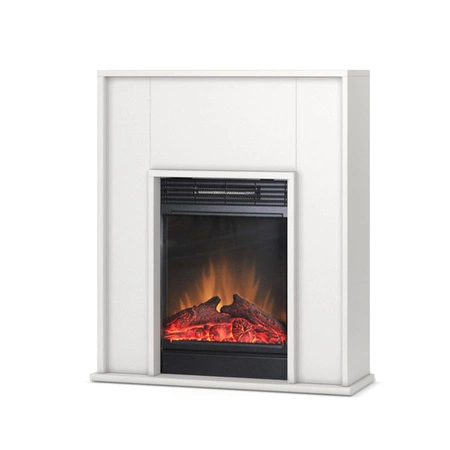 - kominek elektryczny, wolnostojący, obudowa kominka, minimalistyczny kominek ledowy z funkcją grzania, na prąd, biały