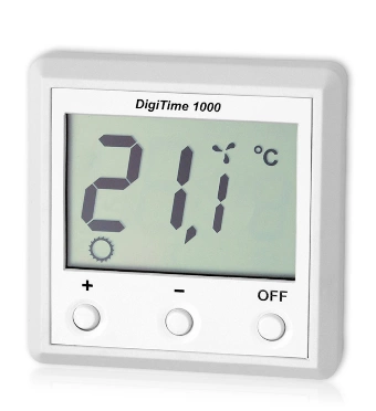 Regulator temperatury DigiTime 1000i to termostat elektroniczny z ręcznym sterowaniem oraz możliwością nastawy temperatury dziennej i nocnej. Wyposażony został w duży, czytelny wyświetlacz LCD.