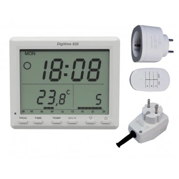 Regulator temperatury DigiTime 820 to termostat elektroniczny z czujnikiem powietrznym, z możliwością programowania. Regulacja temperatury możliwa jest w zakresie 0°C - 35°C. Wyposażony został w nowoczesny wyświetlacz LCD.