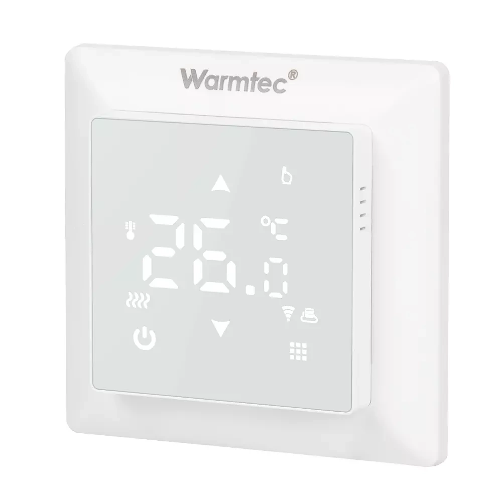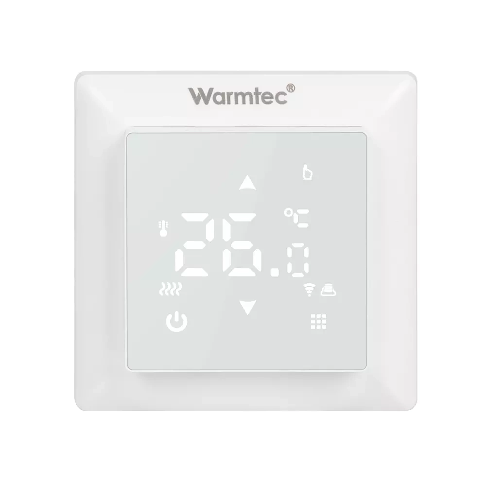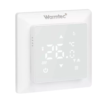 Regulator temperatury Warmtec WRT31W to dwuczujnikowy termostat elektroniczny, z możliwością programowania oraz sterowania Wi-Fi, za pośrednictwem aplikacji zainstalowanej na urządzeniu mobilnym z systemem Android lub iOS. Wyposażony został w nowoczesny, dotykowy wyświetlacz LCD.